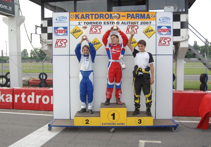 Einen tollen Einstand schaffte David Detmers in der nächst größeren Klasse, der ICA Junioren. Bei seinem ersten Rennen, der Trofeo Estivo in Parma (I), kletterte David mit dem 2. Platz auf das Podium.
