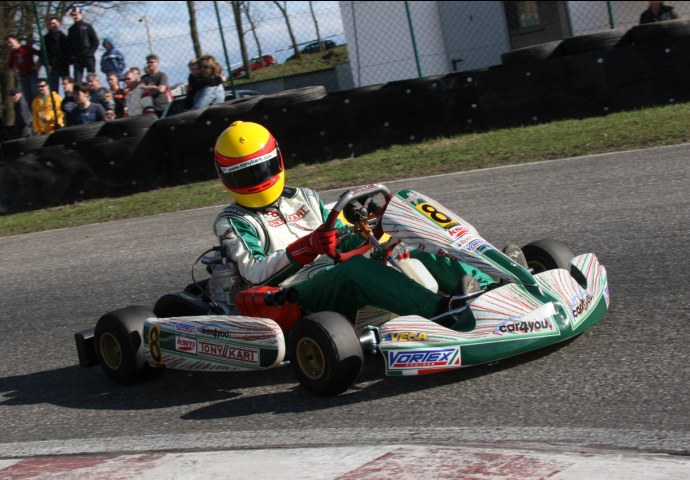 Schon im Zeittraining trumpfte der Österreicher mit einer Fabelzeit von 45.419 Sekunden auf, die ihn sodann auch auf die Pole-Position bugsierte. Nicht ganz so leicht verlief das erste Rennen. Der Youngster musste sich im Rennverlauf auf Platz drei einordnen bis plötzlich Regen einsetzte. Im Gegensatz zur Konkurrenz vor ihm bewies Detmers enormes Fahrgefühl und behielt sein Kart trotz der schwierigen Bedingungen auf der Piste. Als seine Mitbewerber dann von der Bahn rutschten, war der Weg zum Sieg frei für den Tonykart-Piloten. Leichter hatte es der KSM-Schützling im zweiten Rennen, wo er einen klaren Start-Ziel-Sieg einfahren konnte. Damit hatte der Youngster auch in der Tageswertung die Nase vorn und feierte seinen ersten Sieg in der noch jungen Saison.