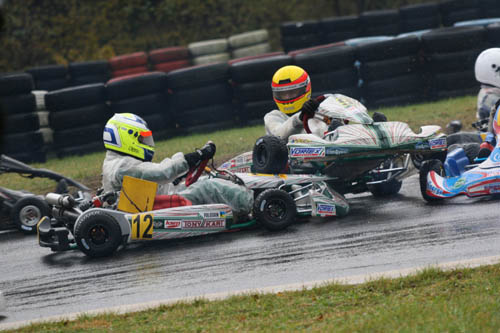 Doch hier folgte schon unmittelbar nach dem Start der Rückschlag. Eine Kollision in der Haarnadelkurve zwang den Youngster in einen Dreher. Zu allem Überfluss war die Spurstange in Mitleidenschaft gezogen wurde, so dass Detmers nichts anderes übrig blieb, als sein ramponiertes Kart in der Box abzustellen.