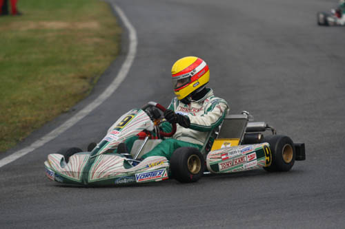 Dabei blies der Pilot aus dem Rennstall des KSM Racing Teams von Beginn an zum Angriff und erkämpfte sich im Zeittraining den viel versprechenden zweiten Platz, wobei er die Bestzeit um nur drei Hundertstel verfehlte. „Eigentlich lief es sehr gut: Tolles Kart, passende Abstimmung und eine super Runde. Ich bin sehr zufrieden mit einem Startplatz in der ersten Reihe. Leider starten wir in den Vorläufen auf der schlechteren Außenseite. Mal sehen, was wir daraus machen können“, zeigte sich David optimistisch.