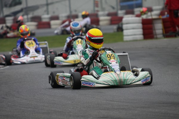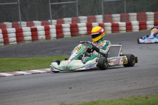 Doch der Regen in den Vorläufen kam Detmers entgegen. Mit einer fulminanten Fahrt kämpfte sich der Österreicher in beiden Rennen an die Spitze und holte damit die Pole-Position für das erste Finalrennen am Sonntag. „Einfach fantastisch! Es lief alles perfekt und ich habe mich sehr wohl gefühlt.“ Die Rennen am Sonntag gingen indessen auf trockener Fahrbahn über die Bühne. Diesmal hatte David sein Kart jedoch im Griff und konnte das 34 Mann starke Feld zu Beginn sogar anführen. Im Rennverlauf musste er aber etwas zurück stecken und fiel nach einer Kollision im Kampf um Rang zwei ins Mittelfeld zurück. Nach 14 Rennrunden erreichte er das Ziel als Zehnter.