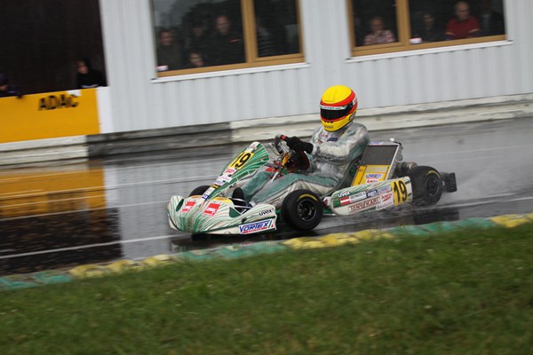 Entsprechend motiviert startete er in das erste Rennen. Leichter Regen sorgte dabei für zusätzliche Spannung. David fühlte sich bei den Bedingungen wohl und machte eine Position nach der anderen gut. Zu Rennende wurde der Regen noch einmal stärker und forderte das fahrerische Können des Österreichers. Innerhalb von zwei Runden arbeitete David sich an gleich fünf Kontrahenten vorbei und wurde als hervorragender Vierter abgewinkt. „Das war ein unglaubliches Rennen“, strahlte der Schüler im Ziel.
