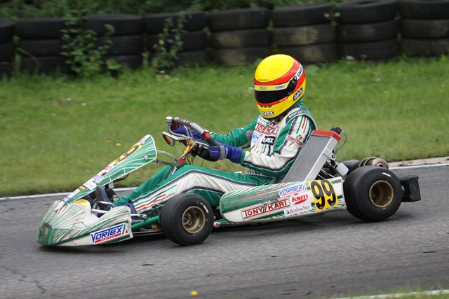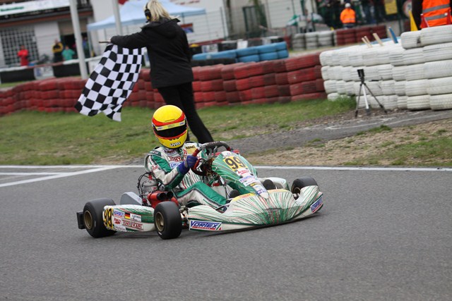 Die Enttäuschung des Deutschen Kart Meisterschaftslaufes in Oschersleben war für den Österreicher schnell vergessen. In Kerpen fand er zu neuer Stärke und kämpfte zeitweise sogar um den Sieg. Dabei lief es im Zeittraining nicht ganz nach den Vorstellungen des Wieners. "Mit Platz neun kann ich noch nicht zufrieden sein", erklärte er am Abend. Doch in den Heats lief es für den KSM Motorsport Schützling wesentlich besser. David kämpfte sich nach vorne und beendete seine Rennen als Zweiter und Vierter. Mit dieser Leistung machte er einen großen Sprung nach vorne und durfte im ersten Rennen aus der zweiten Startreihe auf die Reise gehen.